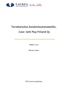 Tarvekartoitus kondomiautomaateille Case: Safe Play Finland Oy