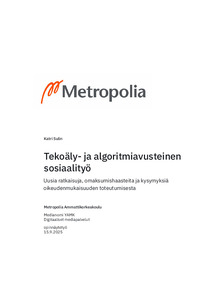 Tekoäly- ja algoritmiavusteinen sosiaalityö : uusia ratkaisuja, omaksumishaasteita ja kysymyksiä oikeudenmukaisuuden toteutumisesta