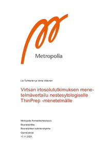 (2025)Opinnäytetyö on tutkimus, joka toteutettiin HUS Diagnostiikkakeskuksen Meilahden patologian laboratoriolle uuden virtsan nestesytologisen menetelmän verifiointia varten. Patologian laboratorio harkitsee siirtymistä virtsan ... -