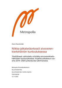 (2025)Aivoverenkiertohäiriö voi heikentää alaraajan toimintakykyä ja vaikuttaa liikkuvuuteen. Nilkka-jalkateräortoosit (AFO) voivat tukea kuntoutumista ja parantaa liikkumista. Tämän opinnäytetyön aiheena oli selvittää, mitä ... -