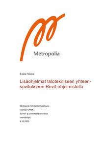 (2025)Opinnäytetyössä käsiteltiin Revit-ohjelmistoon asennettavien lisäohjelmien hyödyntämistä taloteknisten järjestelmien yhteensovituksessa, erityisesti sähköteknisestä näkökulmasta. Työssä tutkittiin kolmea Autodesk App ... -