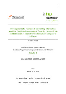 Development of a Framework for Building Information Modeling (BIM) Implementation in Quantity Takeoff (QTO) and Estimation at a Construction Consultant Company in Pakistan