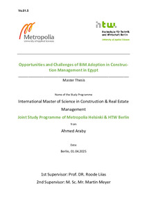 Opportunities and Challenges of BIM Adoption in Construction Management in Egypt