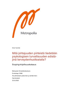 Mitä johtajuuden piirteistä tiedetään psykologisen turvallisuuden edistäjinä terveydenhuoltoalalla? : Scoping-kirjallisuuskatsaus