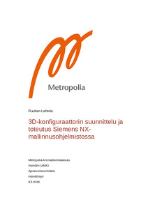 (2026)Insinöörityön tavoitteena oli suunnitella ja kehittää 3D-konfiguraattori Siemens NX:n API-rajapintaa hyödyntäen ABB:n Pitäjänmäen induktiomoottoreiden suunnittelijoiden työn tueksi aiemman 3D-konfiguraattorin puuttuessa. ... -