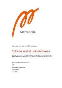 (2026)Tämän toiminnallisen opinnäytetyön tarkoituksena oli tuottaa opetusvideo potilaan asettelusta vatsan alueen sädehoidossa. Työn tavoitteena oli havainnollistaa oikeaoppinen potilaan asettelu tatuointipisteiden avulla. ... -
