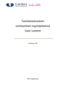 Tämän tutkimuksellisen opinnäytetyön aiheena oli selvittää lanseerauksen onnistumista myyntipisteessä. Tutkimus toteutettiin Lumene Oy:n kanssa joka on suomalainen ihonhoito- ja värikosmetiikkatuotteita valmistava yritys, joka kehittää, valmistaa, myy ja markkinoi tuotteitaan. Tutkimuksen kohteina toimi kaksi päivittäistavaraketjun myyntipistettä, ja siellä haastatellut osastovastaavat sekä tuotteiden esillelaittajat. Lanseeraukset ovat suurimpia toimenpiteitä mitä yritys suorittaa vuositasolla useita ja siksi lanseerauksen onnistumista päätettiin tutkia ja mahdollisesti saada uusia ajatuksia miten yhteistä toimintaa kaupan ja yrityksen välillä voitaisiin parantaa.