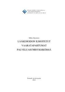 Tämän opinnäytetyön tarkoituksena oli analysoida millaisia lääkehoidon vaaratapahtumia tapahtui vuoden 2012 ensimmäisellä vuosipuoliskolla Vaasan palveluasumisyksiköissä ja mitkä tekijät myötävaikuttivat niiden syntyyn ja millä tavoin tapahtumien toistuminen pystytään estämään. Tutkimuksessa käytettiin HaiPro-raportointijärjestelmästä saatuja ilmoittajien tekemiä vaaratapahtumailmoituksia. Aineisto koostui 57:stä ilmoituksesta. Aineistoa tutkittiin niin kvalitatiivisesti kuin kvantitatiivisesti.