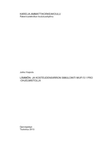 Opinnäytetyön tarkoituksena oli tutustua lämmön- ja kosteudensiirron simulointiin WUFI 5.1 Pro -ohjelmistolla. Aineistossa käydään läpi rakennusfysiikan perusteita, WUFI:n laskentaprosessi vaihe vaiheelta, tulkitaan simuloinnista saatuja laskentatuloksia ja verrataan niitä perinteisiin kosteuden laskentakeinoihin. Toimeksiantajana toimi Pohjois-Karjalan ammattikorkeakoulu.