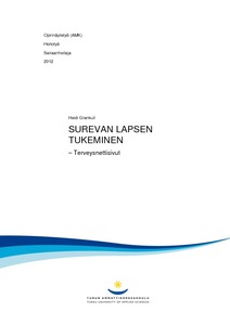 Pyyntö opinnäytetyölle tuli Salon varhaiskasvatuksesta, joka on osa Paremmaksi osaajaksi salolaisella yhteistyöllä -hanketta. Projektin tehtävä oli laatia internet-sivusto lapsen surusta Terveysnettiin, perhenetti-osioon. Aihe rajattiin leikki-ikäisiin lapsiin ja heidän kokemaansa suruun ja surun tunnistamiseen läheisen kuolemasta johtuen. Internet-sivusto on koottu opinnäytetyön kirjallisuuskatsauksen perusteella. Sivustoilla käsitellään lapsen surukokemusta, surureaktioita ja siihen vaikuttavia eri tekijöitä. Sivustolla käsitellään myös lapsen käsitystä kuolemasta ja siihen liittyvistä asioista. Internet-sivuston tavoitteena on antaa pääasiassa varhaiskasvatukseen tietoa ja työkaluja lapsen surun tunnistamiseen ja sen käsittelemiseen.
