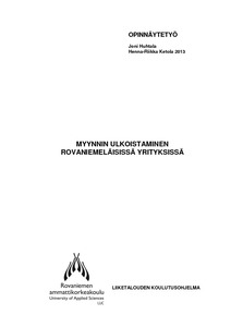 Opinnäytetyön tarkoituksena oli kartoittaa yritysten ajatuksia myynnin ulkoistamisesta, sekä tuottaa sisältöä myynnin ulkoistamista koskevaan oppaaseen. Maantieteellisesti tutkimus on rajattu Rovaniemelle ja koskemaan yritys. Opinnäytetyö oli toimeksianto Lapland Sales Academy – hankkeelta.