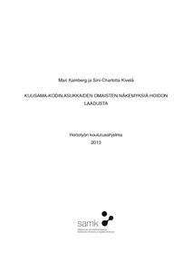 Tämän opinnäytetyön tarkoituksena oli selvittää Kuusama-Kodin asukkaiden omaisten näkemyksiä hoidon laadusta. Omaisille järjestettiin kysely, jonka vastausten perustella suunniteltiin ja toteutettiin omaisille tietoisku muistisairauksista sekä asukkaille virikepäivä. Projektin tavoitteena oli tuottaa tietoa, jota Kuusama-koti voi hyödyntää kehittäessään asukkaiden hoitoa huomioiden myös omaisten näkökulman. Omaisten näkemyksien tunteminen on tärkeää, jotta heidän panostus osana hoidonsuunnittelua ja toteutusta mahdollistuisi.