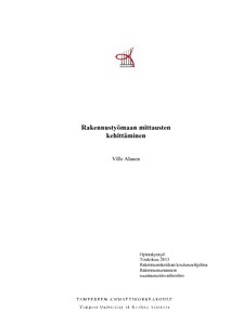 Työssä käydään teorian pohjalta läpi mittaustekniikan kehitystä, sekä rakennusalan eri mittausmenetelmiä ja -laitteita. Pääpaino työssä on kuitenkin takymetrimittauksissa. Takymetrimittausten osalta käydään tarkemmin läpi mm. kaluston käsittely, eri mittausmenetelmät, sekä CAD -ohjelmistojen käyttö takymetrimittausten tukena.