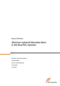 Tässä insinöörityössä kehitettiin toimiva alkolukkokytkentä Mercedes-Benz E 300 BlueTEC Hybridiin, joka on tarkoitettu koulu- ja päivähoitokuljetuskäyttöön. E 300 Hybrid poikkeaa normaalista polttomoottorilla varustetusta autosta niin paljon, että alkolukkoa ei ole mahdollista asentaa siihen olemassa olevilla ohjeilla.