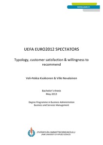 UEFA EURO2012 SPECTATORS : Typology, customer satisfaction & willingness to recommend