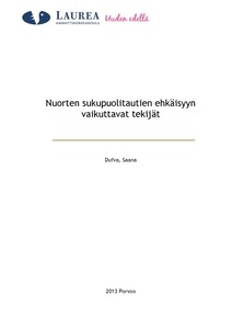 Tämän opinnäytetyön tarkoituksena oli selvittää, mitkä tekijät vaikuttavat nuorten sukupuolitautien ehkäisyyn. Monet tekijät vaikuttavat nuorten tapaan toimia seksuaalisesti latautuneissa tilanteissa. Aina oikea ja opittu tieto ei riitä, jotta nuori onnistuisi toimimaan turvallisesti seksuaalielämässään.