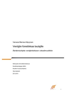 Vieraiden kielten fonetiikan eli ääntämisen opinnot ovat tärkeä osa laulun ammattikoulutusta. Metropolia ammattikorkeakoulun musiikin koulutusohjelmassa järjestetään fonetiikan opetusta italian, saksan, ranskan, englannin, espanjan ja venäjän kielissä sekä pohjoismaisissa kielissä. Venäjän fonetiikan opetus on ollut haasteellista järjestää, koska sopivia opettajia ei ole aina löytynyt ja valmista opetusmateriaalia ei ole. Tämän opinnäytetyön myötä kevätlukukaudella 2013 järjestettiin erityisesti laulun ja kuoronjohdon opiskelijoille suunnattu venäjän fonetiikan kurssi, jonka opetusmateriaali jää Metropolia ammattikorkeakoulun opiskelijoiden ja opettajien käyttöön tulevaisuutta varten.
