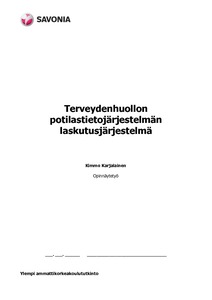 Tämä opinnäytetyö käsittelee terveydenhuollon potilastietojärjestelmän laskutusjärjestelmän pro-totyypin toteutusta. Opinnäytetyön avulla pyritään tarkastelemaan uusien menetelmien, teknologi-oiden ja välineiden soveltuvuutta uuden laskutusjärjestelmän toteutuksessa.