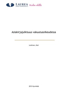 Opinnäytetyössä tarkastellaan asiakirjajulkisuutta ja valitusasian etenemistä vakuutusoikeudessa. Erityisesti kiinnitetään huomiota asian julkisuuteen ja asianosaisen oikeuteen nähdä itseään koskevia asiakirjoja. Lisäksi opinnäytetyössä tuodaan esille syitä, miksi valitusasian käsittely vakuutusoikeudessa on osittain salaista.