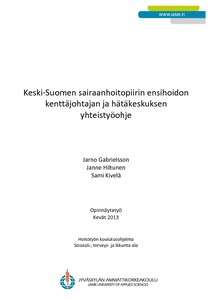 Opinnäytetyön lähtökohtana ovat olleet vuoden 2013 alusta perustetut ensihoidon kenttäjohtajien virat sekä ensihoidon järjestämisvastuun siirtyminen Keski-Suomen sairaanhoitopiirille. Uuden terveydenhuoltolain mukainen ensihoidon kenttäjohtamisjärjestelmä on tuonut mukanaan myös uudistuksia aiempiin toimintamalleihin ja vaikuttanut hätäkeskuksen rooliin. Sairaanhoitopiirin vastuulla on ohjata hätäkeskuksen toimintaa ensihoidon osalta ja ohjeistus kenttäjohtajien ja hätäkeskuksen väliltä on puuttunut kokonaan.