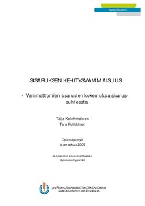 Opinnäytetyön tarkoituksena oli selvittää kehitysvammaisten henkilöiden vammattomien sisarusten kokemuksia sisaruudesta. Työllä halutaan antaa mahdollisuus vammattomille sisaruksille tuoda äänensä kuuluviin. Kokemukset voivat tulevaisuudessa olla tukena kehitettäessä palveluita ja koulutusta. Kolme tutkimustehtävää oli seuraavat: Millaiset olivat kokemukset sisaruudesta perheen arjessa? Millainen merkitys sisarussuhteella on tällä hetkellä? Millainen merkitys kehitysvammaisella sisaruksella on tulevaisuudessa? Työ on toteutettu yhteistyössä Keski-Suomen Kehitysvammaisten Tukiyhdistyksen kanssa.
