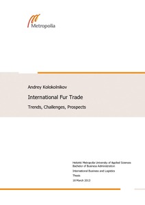 Nevertheless, future prospects of the fur industry are not very clear. The market is volatile and difficult to forecast, ethical disputes are not over and new regulations may be imposed. In this thesis, the major trends, challenges and future prospects of the international fur trade industry are analyzed in order to find out whether current the upturn is of a temporary nature or if further sales growth and expansion to the new markets is likely.