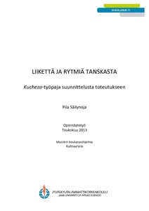 Opinnäytetyö raportoi musiikkia, liikettä ja rytmiikkaa yhdistävän Kucheza-työpajan vaiheita suunnittelusta toteutukseen. Työpaja oli kahden opintojensa loppuvaiheessa olevan musiikkipedagogiopiskelijan yhteinen projekti, joka toteutettiin helmikuussa 2013 Kuopiossa. Ryhmä koostui luokanopettajista ja kokoontui yhteensä neljä kertaa.