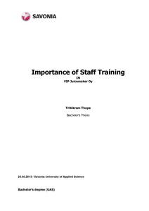 The objective of this research was to highlight the importance of training in organizations via a study conducted at VIP Juicemaker, a leading juice producer in Finland. The main purpose of the study was to understand the system of human resource management and the process of training in the case company. Furthermore, the study aimed to analyze the effect of training on the job satisfaction of the employees. Another objective of the study was to provide suggestions on how to improve the management system of the company and its training methods.