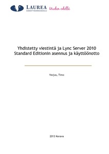 Teoriaosuudessa keskitytään yhdistettyyn viestintään yleisesti. Ensin käydään läpi mitä hyötyjä yhdistetystä viestinnästä on ja minkätyyppisille organisaatioille se sopii. Työssä perehdytään Lync 2010 ympäristön asentamisen eri vaiheisiin ja käyn läpi erikokoisille ja eri tyyppisille organisaatioille sopivia ympäristöjä.