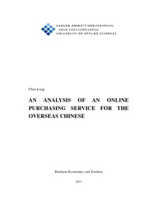 Kiinan talouden kasvun ja kansalaisten merkittävän elinolojen paranemisen myötä, yhä useammat kiinalaiset päättävät opiskella, työskennellä tai asua vieraissa maissa. Tämän kansallisen ilmiön johdosta, monet yhtiöt ovat alkaneet perustamaan tai laajentamaan liiketoimintaansa erikoistumalla ulkomailla asuvien kiinalaisten verkko-ostopalveluihin. Suhteellisen uutena liiketoiminta-alueena, jonka tavoitteena on palvella yli viittä miljoonaa potentiaalista asiakasta, verkko-ostamisen tulevaisuus ulkomailla asuville kiinalaisille alana vaikuttaa varsin tuottoisalta ja kilpailevalta. Tämän alan toimijoilla on kuitenkin vielä pitkä matka kuljettavana menestyäkseen. Tässä opinnäytetyössä analysoidaan ja käsitellään pääasiassa tämän hetken vaikeuksia ja asiakkaiden odotuksia. Analysoimalla ja vertailemalla kuinka liiketoiminta-alueen yhtiöt pärjäävät ja mitä asiakkaat odottavat palvelulta, voidaan päästä parempiin ratkaisuihin siinä, kuinka parantaa tämän alan kokonaisvaltaista suorituskykyä tulevaisuudessa. Opinnäytetyössä on kaksi pääosiota. Ensimmäisessä osiossa tehdään kirjallisuuskatsaus aiheen kannalta oleellisiin teorioihin akateemisella tavalla, jossa luodaan kehys selvittämällä teoreettisen materiaalin sisältö. Toisessa osiossa on toteutettu tutkimus, jotta tutkimusongelma sai lisäselvitystä. Yhdessä nämä kaksi osiota antavat opinnäytetyölle vakaan pohjan ja loogisen sekä luotettavan lopputuloksen.