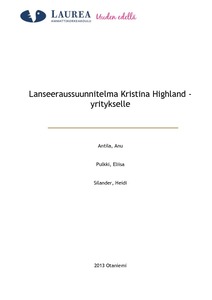 Lanseeraussuunnitelma Kristina Highland -yritykselle