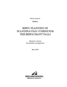 The main goal of the following thesis work is to create a Scandinavian menu for the restaurant Talli. Menu has to be useful and suitable. It is planned to serve a menu after planning. Menu will be planning for three days.
