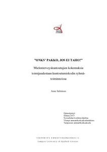 Tämän opinnäytetyön tarkoituksena on nostaa esiin mielenterveyskuntoutujien kokemuksia. Millaisia kokemuksia kuntoutujilla on kuntoutumiskodin ryhmätoiminnoista, mahdollisuuksista vaikuttaa ryhmätoimintoihin ja niiden kehittämiseen sekä miten ryhmätoiminnat vaikuttavat kuntoutujien arkeen.