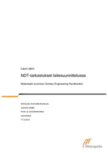 Tämän insinöörityön tarkoituksena oli tuottaa teknistä materiaalia työn tilaajan Outotec Oyj:n Engineering Handbookiin. Engineering Handbook toimii valmistuttuaan käsikirjana suunnittelijan apuna projektien suunnittelun eri vaiheissa. Tässä insinöörityössä keskityttiin siihen, mitä suunnittelijan tarvitsee ottaa huomioon ainetta rikkomattomista eli NDT-tarkastuksista koneen suunnittelu- ja valmistusprosessissa.