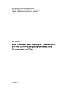 The results of the study show that there are various ways for the case company to communicate with its customers and prospects better. From the information gathered the base and key customers of the case company were clearly identifiable and available to be valued. Based on the findings the case company is now capable of planning their integrated marketing communication activities effectively. In short, the case company has now a base on which it can start building their marketing plans.