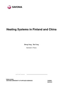 The study consists of theoretical part which describes the background, structure and different features of the heating systems, alternative energy sources and the heating systems for the house and practical part which includes comparison of the heating systems in Finland and China.
