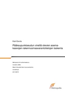 Insinöörityössä selvitettiin pääkaupunkiseudun vireillä olevien asemakaavojen rakennusmaavarantotietojen laskennan mahdollisuuksia. Työn tavoitteena oli tuottaa Helsingin seudun ympäristöpalvelujen (HSY) tuottamaa voimassa olevien asemakaavojen rakennusmaavarantotietoaineistoa SeutuRAMAVAa vastaava paikkatietoaineisto vireillä olevista kaavoista.