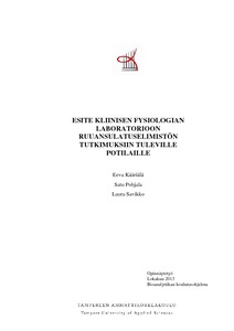 Opinnäytetyö tehtiin yhteistyössä Pirkanmaan sairaanhoitopiirin Kuvantamiskeskus- ja apteekkiliikelaitoksen eli AKU:n kliinisen fysiologian laboratorion kanssa. Työn tavoitteena oli lisätä esitteen avulla potilaiden tietoa ruuansulatuselimistön tutkimuksista. Opinnäytetyön tarkoituksena oli tuottaa esite, jossa kerrotaan Kuvantamiskeskus- ja apteekkiliikelaitoksen toiminnasta ja kliinisen fysiologian laboratoriossa tehtävistä ruuansulatuselimistön tutkimuksista. Opinnäytetyö rajattiin käsittelemään ruuansulatuselimistön tutkimuksia, koska yleisimmistä hengityselimistön tutkimuksista oli tehty jo aiemmin vastaava opinnäytetyö.