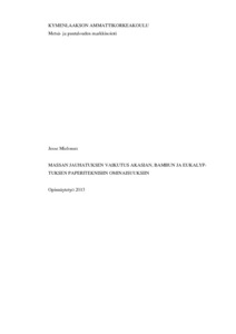 MASSAN JAUHATUKSEN VAIKUTUS AKASIAN, BAMBUN JA EUKALYP-TUKSEN PAPERITEKNISIIN OMINAISUUKSIIN