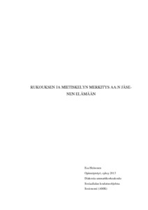 Heinonen, Esa. Rukouksen ja mietiskelyn merkitys AA:n jäsenen elämään. Syksy 2013, 50 s. Diakonia-ammattikorkeakoulu, Sosiaalialan koulutusohjelma, sosionomi (AMK).