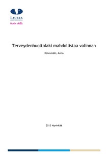 Terveydenhuoltolaki tuli voimaan toukokuun 2011 alusta. Se laajensi vapautta valita hoitopaikka ja hoitohenkilöstö julkisessa perusterveydenhuollossa. Vuodesta 2014 alkaen on mahdollisuus valita oma terveysasema myös kotikunnan ulkopuolelta. Hyvinkään terveyskeskuksen toimeksiannosta päätettiin toteuttaa tutkimus: selvitys uuden terveydenhuoltolain mukaisesta terveysaseman valintaoikeuden käytöstä Hyvinkäällä ja naapurikunnissa.
