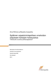 Opinnäytetyömme on osa projektia Kliinisen osaamisen vahvistaminen hoitotyössä, joka toteutuu yhteistyössä Metropolia Ammattikorkeakoulun ja Helsingin ja Uudenmaan sairaanhoitopiirin Medisiinisen tulosyksikön kanssa. Tämän projektin tarkoituksena on vahvistaa sairaanhoitajien ja sairaanhoitaja opiskelijoiden näyttöön perustuvaa kliinistä osaamista. Opinnäytetyössämme selvitämme miten sydämen vajaatoimintapotilaan omahoidon ohjauksen hoitotyön suosituksen osa-alueet näkyvät vapaasti saatavilla olevissa potilasoppaissa. Hoitosuositus on asiantuntijoiden laatimia lausumia, jotka on laadittu asiantuntijoiden ja potilaiden hoitopäätösten tueksi ja joiden avulla edistetään korkeatasoista näyttöön perustuvaa hoitotyötä.