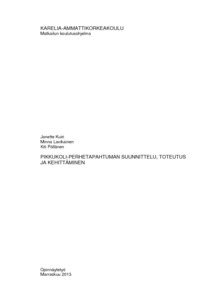 Opinnäytetyö koostui toiminnallisesta ja tutkimuksellisesta osuudesta. Toiminnallisen osuuden tavoitteena oli suunnitella ja toteuttaa PikkuKoli-perhetapahtuma onnistunees-ti. Työn tutkimuksellisen osuuden tarkoituksena oli saada tietoa tapahtuman asiakkaista ja heidän tyytyväisyydestään tapahtumaan. Lisäksi tutkittiin työryhmän eli Pohjois-Karjalan ammattiopiston opiskelijoiden, opettajien ja toimeksiantajan näkökulmaa tapah-tuman suunnittelun ja toteutuksen onnistumisesta. Aineistoa kerättiin kyselyiden, haas-tatteluiden ja havainnoinnin avulla. Työryhmästä 12 vastasi kyselyyn ja neljää haastatel-tiin. Asiakastyytyväisyyskyselyyn vastasi 22 henkilöä. Tulosten perusteella laadittiin ke-hitysideoita tapahtuman suunnitteluun ja toteutukseen.