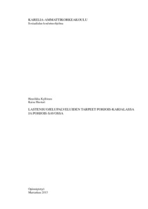 Opinnäytetyön tehtävänä oli selvittää lastensuojelupalveluiden tarpeita Pohjois-Karjalan ja Pohjois-Savon alueen kunnista. Tutkimuksen tavoitteena oli selvittää, mitä ongelmia lastensuojeluasiakkuuksien takana on, mitkä palvelut tukisivat työntekijöiden tekemää työtä, mitä palveluja asiakkaat kunnissa tarvitsisivat sekä minkälaiset yksityisen palvelutuottajan palvelut tukisivat julkisia palveluita. Toimeksiantajana oli Merikratos Lastensuojelu Oy:n Kaakkois- ja Itä-Suomen alueen Pohjois-Karjalan aluetoimisto.