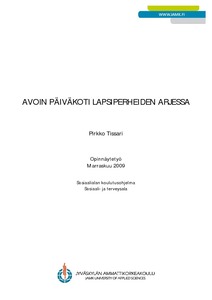 Opinnäytetyöni oli tilaustyö Mannerheimin Lastensuojeluliitto Jyväskylän yhdistys ry:lle. Työn tavoite oli selvittää Perhekeskus Tourutuvan avoimen päiväkodin tarpeellisuutta lapsiperheiden tukimuotona. Avoin päiväkoti tarjoaa avointa varhaiskasvatusta kolmena päivänä viikossa ja on tarkoitettu kaikille alle kouluikäisille lapsille ja heidän perheilleen. Tutkimustehtävänä oli selvittää avoimen päiväkodin merkitystä lapsiperheen sosiaalisessa verkostossa ja miten avoimen päiväkodin toiminta ja sieltä saatu vertaistuki ovat tukeneet