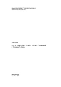 Toiminnallinen opinnäytetyö käsittelee kotiin vietäviä hoitopalveluita maaseudun tarpeisiin yksityisen tuottamana. Opinnäytetyön teoreettinen osuus sisältää selvityksen kotihoidosta ja kotihoidon kehittämisestä sekä toteuttamisesta pitkiin matkoihin. Opinnäytetyön toiminnallisena tuotoksena toteutui liiketoimintasuunnitelma joka sisältää toimivat kotiin vietävät sosiaali- ja terveyspalvelut yksityisen tuottamana syrjäseudun harvaanasutulle alueelle pitkiin matkoihin. Liiketoimintasuunnitelma on tuotettu Ilomantsiin ja sen ympäristöön toteutettavaksi. Liiketoimintasuunnitelma vastaa sosiaali- ja terveys- palveluiden tarpeeseen syrjäseudun asukkaille. Maaseudulla väestön ikääntyvien osuus nousee ja hoitopalveluiden tarve kasvaa.