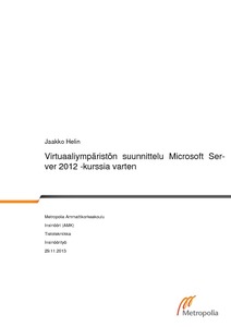 Insinöörityön tavoitteena oli suunnitella ja testata kurssimateriaalia ja virtuaaliympäristöä Windows Server 2012 -kurssia varten. Virtuaaliympäristö toteutettiin käyttäen VMware Workstation -virtualisointisovellusta. Työssä rakennettiin virtuaaliympäristö työasemalle, johon luotiin kolme virtuaalikonetta kurssin harjoituksia varten. Työ tehtiin Metropolia Ammattikorkeakoululle.