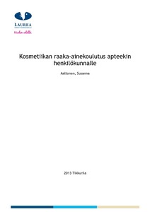 Tämän toiminnallisen opinnäytetyön tarkoituksena oli suunnitella ja toteuttaa kosmetiikan raaka-ainekoulutus Matinkylän Apteekin henkilökunnalle. Matinkylän Apteekissa helmikuussa 2013 tehty laadullinen tutkimus ja sen tulokset antoivat lähtökohdat koulutuksen suunnittelulle. Tutkimuksessa pyrittiin selvittämään, antaako farmaseutin koulutus riittävästi valmiuksia apteekin kosmetiikkatuotteiden myyntiin. Tutkimuksella haluttiin myös selvittää farmaseuttien halukkuutta kosmetiikan lisäkoulutukseen. Laadullinen tutkimus osoitti ihon toimintojen tuntemuksen ja lääkinnällisen hoidon säilyvän farmaseuttien muistissa päivittäisessä työssä hyvin. Kosmetiikan lisäkoulutusta toivoivat kaikki, erityisesti haluttiin oppia tulkitsemaan kosmeettisten valmisteiden ainesosaluetteloita.