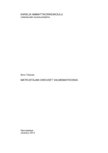Tämän opinnäytetyön tarkoituksena on selvittää mitä oikeuksia matkustajalla valmismatkoissa on. Aihetta on pohjustettu käymällä läpi valmismatkaliiketoimintaa ja kuinka sitä sääntelevät lait valvovat matkustajan etua. Myös matkustajan oikeuksiin läheisesti liittyviä matkanjärjestäjän velvollisuuksia käydään työssä läpi. Opinnäytetyö toteutettiin lainopillisena tutkimuksena, jonka aineistona toimi valmismatkustusta sekä valmismatkaliiketoimintaa koskevat lait ja asetukset, lain esityöt, oikeuskirjallisuus sekä Internet-lähteet. Havainnollistavina esimerkkeinä käytettiin kuluttajariitalautakunnan ratkaisuja.
