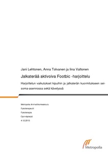 Opinnäytetyö toteutettiin yhteistyössä HE-Fysion sekä mehutehtaan työntekijöiden kanssa. Opinnäytetyön tarkoituksena oli selvittää jalkaterää aktivoivan Footbic -harjoitteluohjelman vaikutuksia tehdastyöntekijöiden kokemiin tuki- ja liikuntaelin kipuihin kolmen kuukauden aikana. Footbic -harjoitusohjelman tarkoituksena on aktivoida jalkaterän pieniä lihaksia. Opinnäytetyön menetelmänä oli alku- sekä loppumittausten avulla selvittää esiintyykö teh-dastyöntekijöillä kipuja, miten paine jakautuu jalkaterille ja miten jalkaterä kuormittuu käve-lyaskeleen aikana. Kolmen kuukauden intervention avulla haluttiin selvittää, miten Footbic -harjoitusohjelmalla ja yksilöllisillä pohjallisilla voidaan näihin vaikuttaa. Tutkimukseen osallistui 34 mehutehtaan työntekijää, jotka jaettiin kolmeen ryhmään poh-jallistarpeen mukaan. Ensimmäisessä ryhmässä oli 22 henkilöä ja he tekivät Footbic -harjoittelua ja käyttivät yksilöllisiä tukipohjallisia. Toinen ryhmä harjoitteli ainoastaan Footbic -ohjelmalla ja kolmas ryhmä käytti yksilöllisesti valmistettuja tukipohjallisia. Alkumittaukset suoritettiin maaliskuussa 2013 ja loppumittaukset kesäkuussa 2013. Tulok-set analysoitiin SPSS-ohjelmalla Wilcoxonin testin avulla. Tutkimuksen tulokset olivat po-sitiivisia. Suurimmalla osalla kivut olivat vähentyneet ja muutamalla henkilöllä kipuja ei enää ollut. Askeleen laadussa tapahtui positiivisia muutoksia ja lisäksi painopiste siirtyi tasaisemmin päkiälle ja kannalle. Tuloksiin voi olla vaikuttanut sekä harjoitteluohjelma että pohjallinen, jolloin Footbic -harjoitusohjelmaa ei voida suositella yksinään. Tulokset ovat suuntaa-antavia ja lisätutkimuksia pelkästä Footbic -harjoitteiden vaikutuksista tarvitaan.